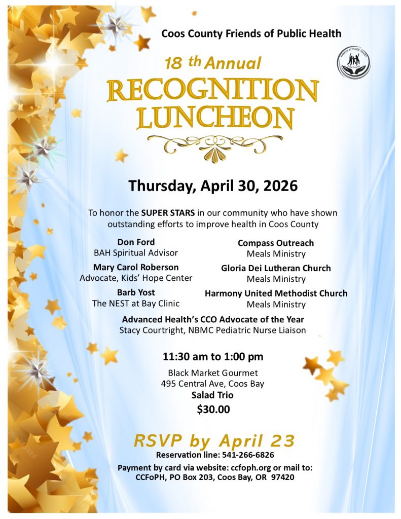 - Annual Recognition Lunch to honor Superstars, outstanding contributors to public health in our community
